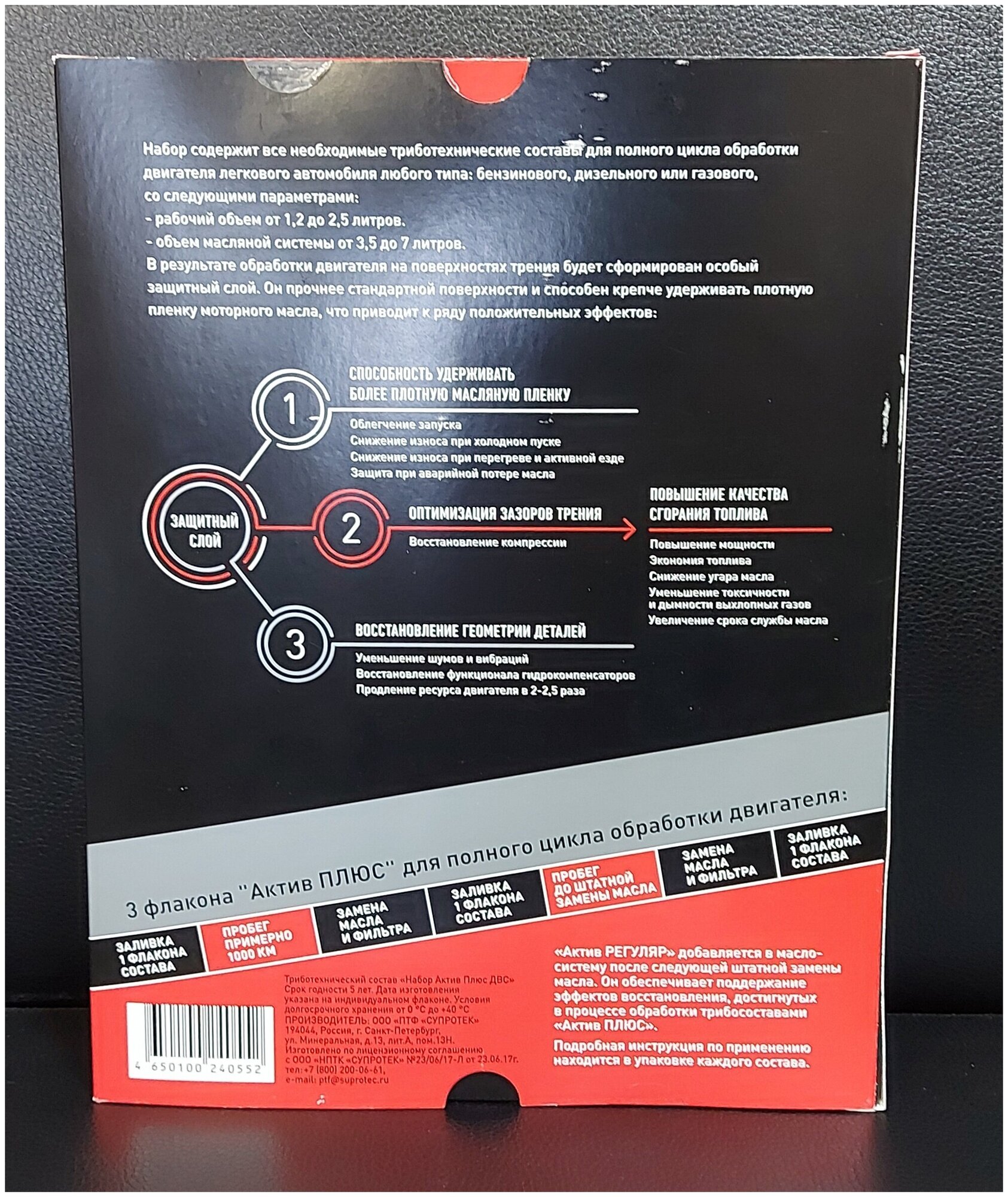 - three bottles of "Active Plus" Active Plus Gasoline 90 ml; </br> - one bottle of "Active Regular" Active Regular 100 ml.