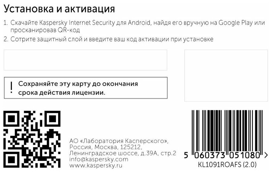 Application type: antivirus/network security, application name: Kaspersky Internet Security, license term: 12 months, number of devices: 1 pc., OS supported: Android, license type: personal use