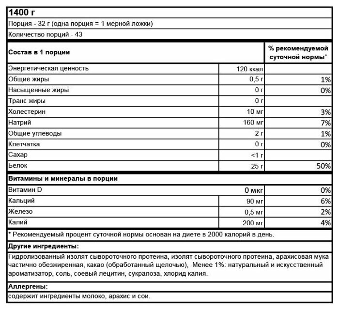 Additional Information: Cookie-cream flavor: calories 100 kcal, carbohydrates 1.5 g, calcium 150 mg, sodium 80 mg; chocolate flavor: carbohydrates 1 g; pina colada flavor: calcium 150 mg; Directions for use: Add one heaping scoop of product to 350 ml
