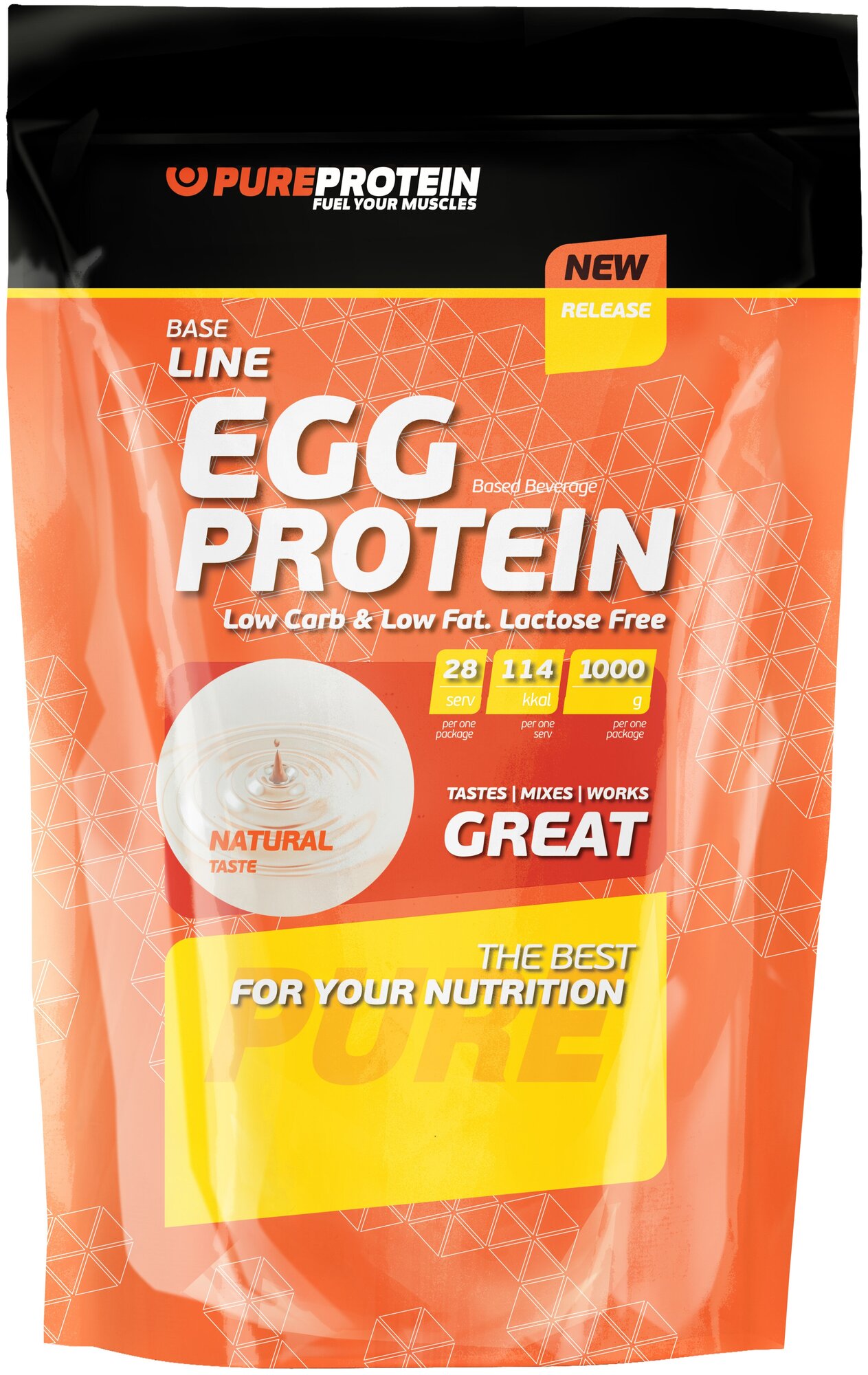 Type: multi-component, egg, form: powder, protein content per 100 g: 69.90 g, dietary features: non-GMO, no aspartame, no gluten, no lactose, no maltodextrin
