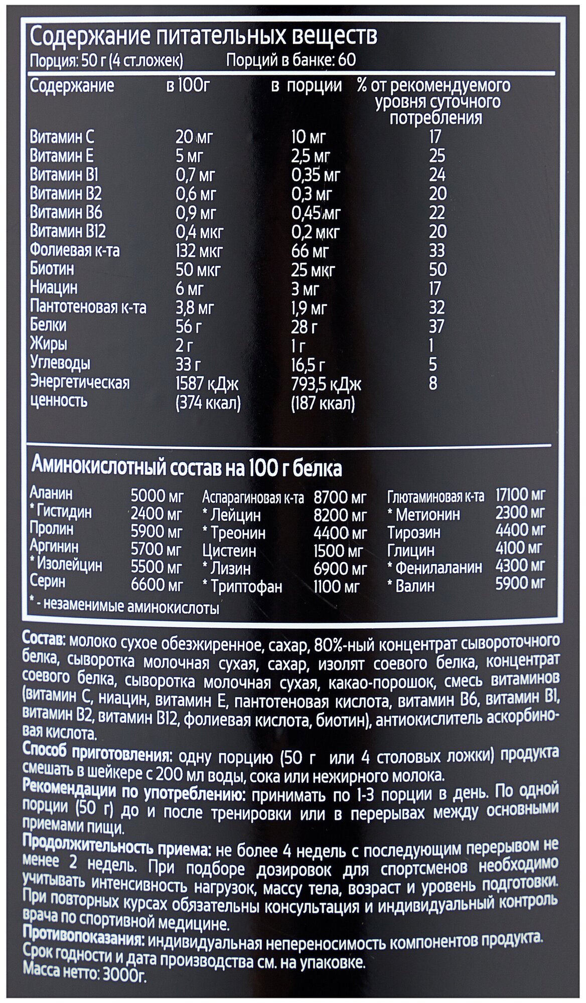 Contains dairy and soy ingredients; may contain traces of processing, eggs, wheat, soy, nuts, peanuts, fish, shellfish; Directions for use: Mix 1 serving 1 scoop in 200 ml of cold water or non-fat