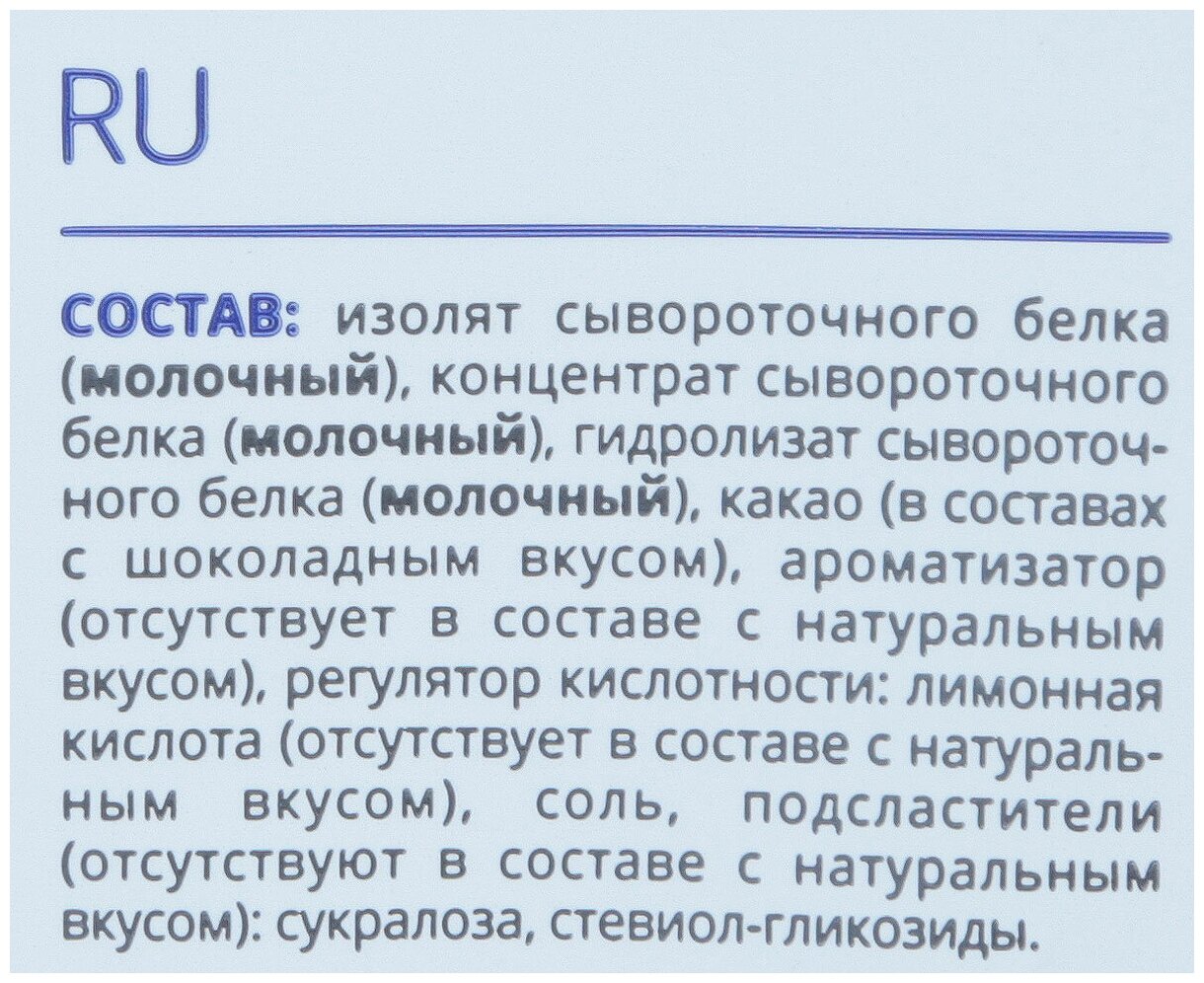 Type: whey hydrolyzate, whey isolate, whey concentrate, release form: powder