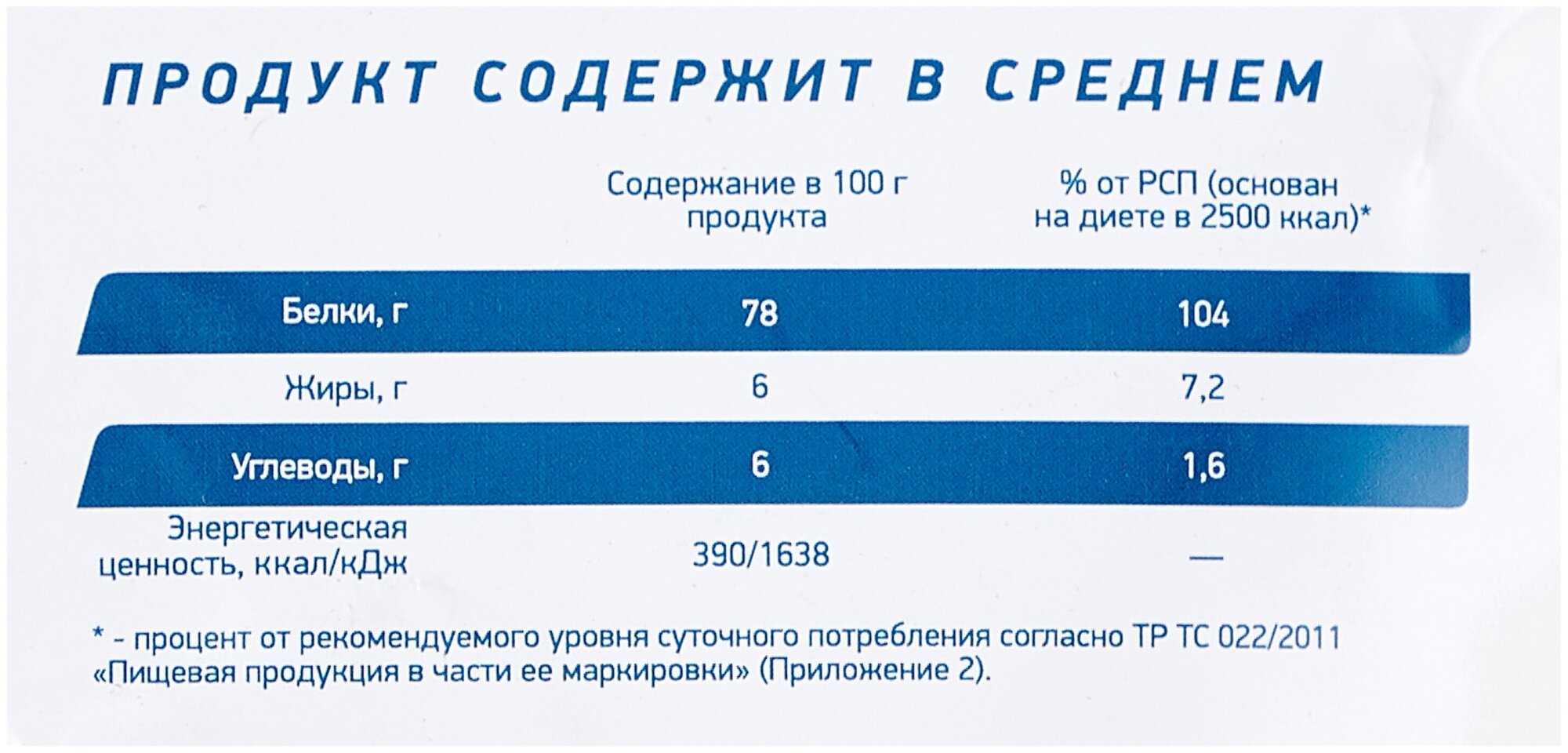 Protein content in 100 g: 78