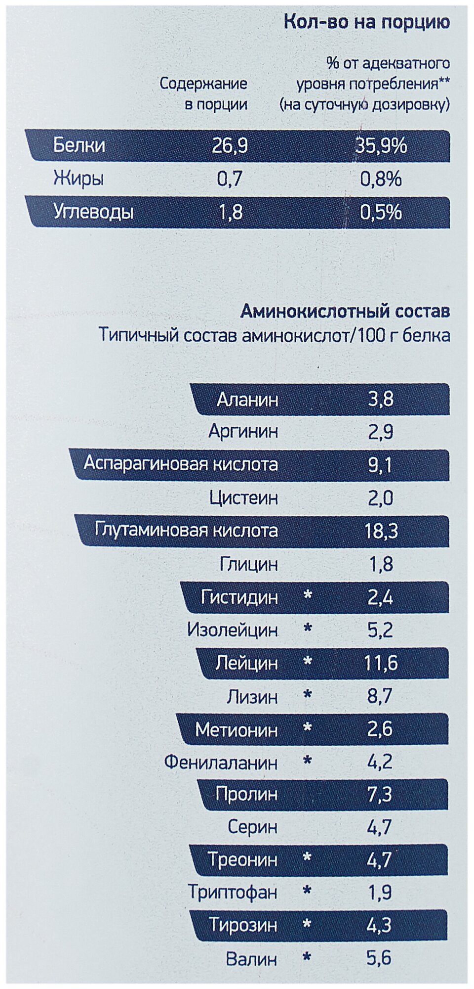 Contains dairy and soy ingredients; may contain traces of processing, eggs, wheat, soy, nuts, peanuts, fish, shellfish; Directions for use: Mix 1 serving 1 scoop in 200 ml of cold water or non-fat