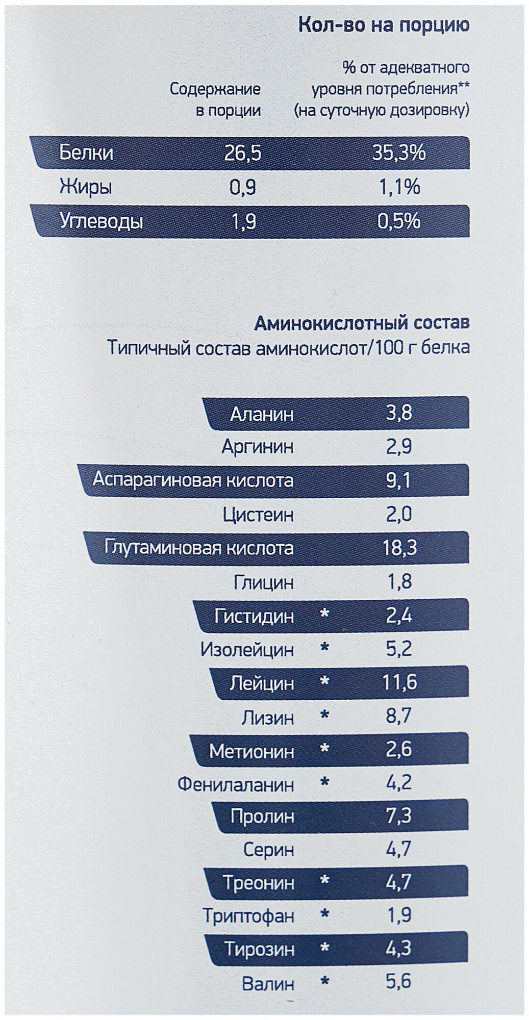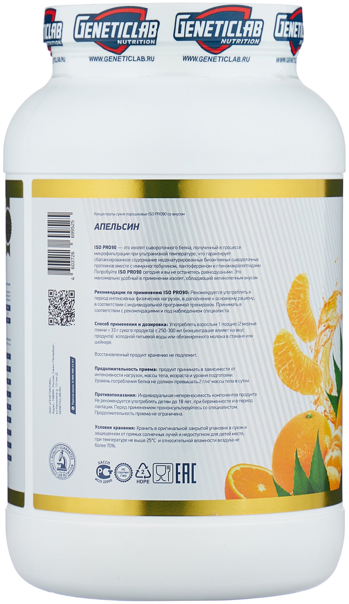 Type: whey isolate, formulation: powder, protein content per 100 g: 90 g