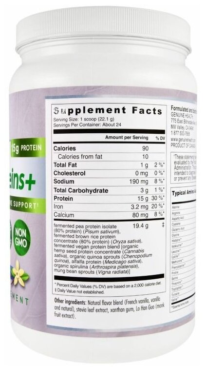 Suggested Use: Mix 1 scoop 22.1g in 1 8oz glass of pure water.; composition: 80% oryza sativa protein, protein blend from fermented vegan pig protein [organic hemp protein concentrate