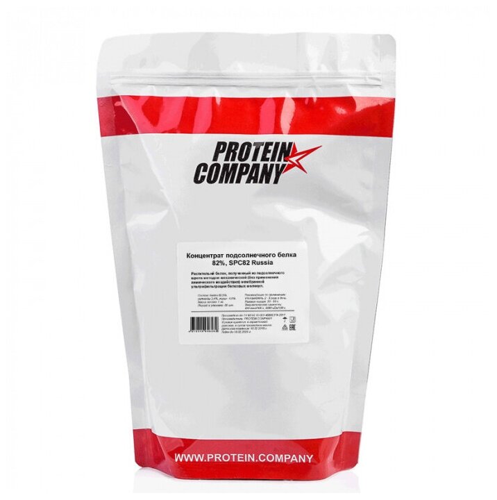 Protein 82.5%, fat 4.60%, ash 4.31%, carbohydrates 3.40%, moisture 4%; recommendations for use: Single serving 20-30 g, consumed 2-3 times a day.; composition: vegetable protein obtained from sunflower meal