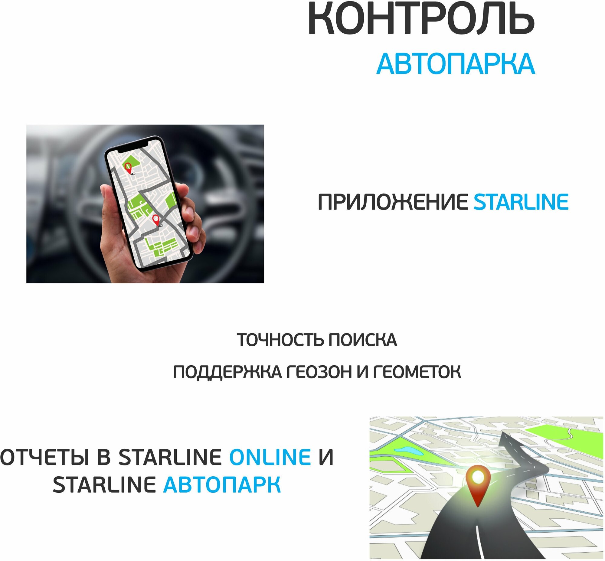 Purpose: car, for animals, for motorcycle, personal, location determination: GPS, GSM, GLONASS, notification: GPRS, push notification, SMS, sound signal, sensors: movement sensor, temperature sensor