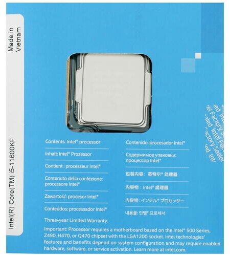 Socket: LGA1200, processor line: Intel Core i5, number of cores: 6, manufacturing process: 14 nm, processor frequency: 3900 MHz, memory type: DDR4, core: Rocket Lake-S, L3 cache: 12 MB, heat dissipation: 95 W, gaming