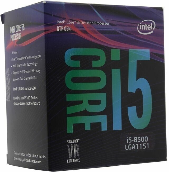Socket: LGA1151 v2, processor line: Intel Core i5, number of cores: 6, manufacturing process: 14 nm, processor frequency: 3000 MHz, memory type: DDR4, core: Coffee Lake-S, L3 cache size: 9 MB, heat dissipation: 65 W, gaming