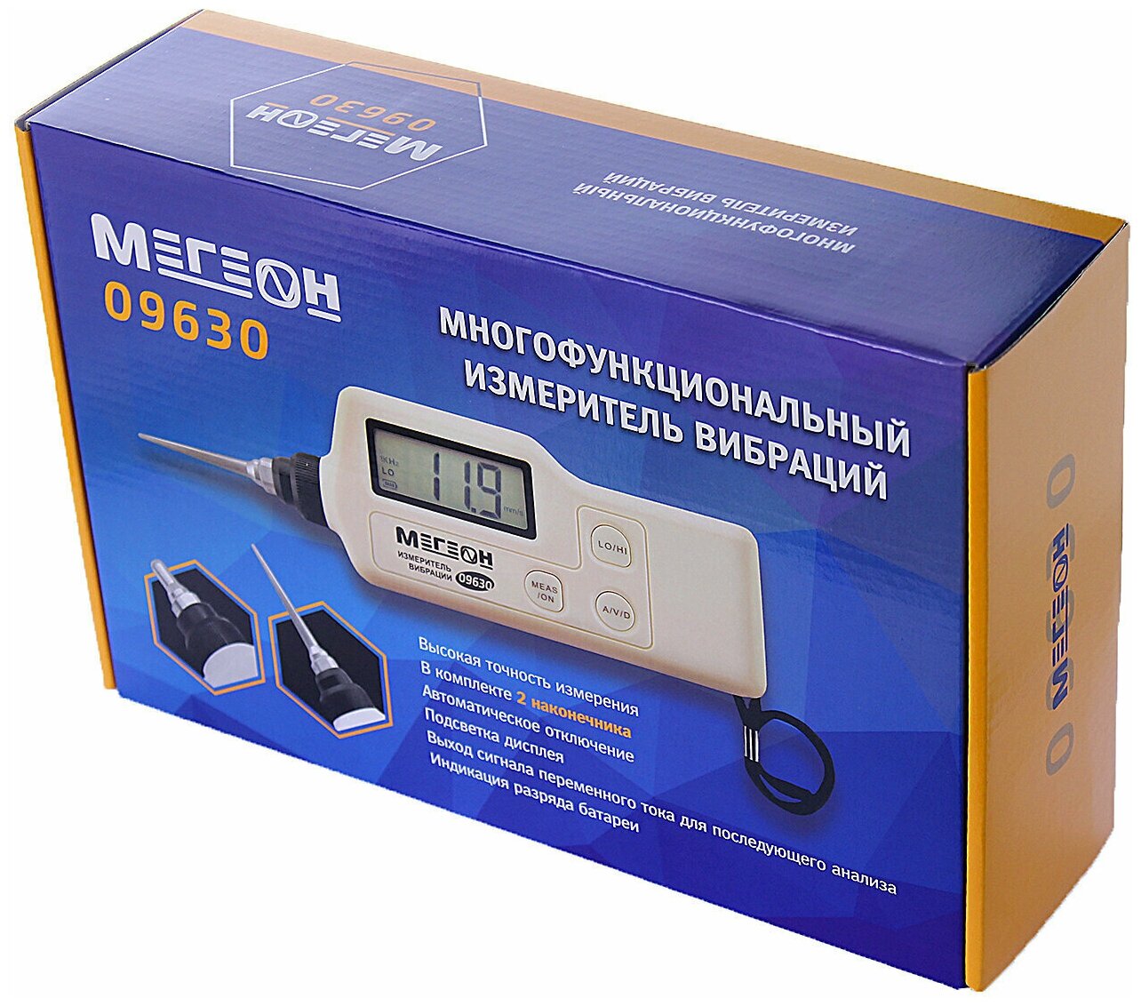Backlight display, measurement of the three main vibration parameters; Two types of probes included