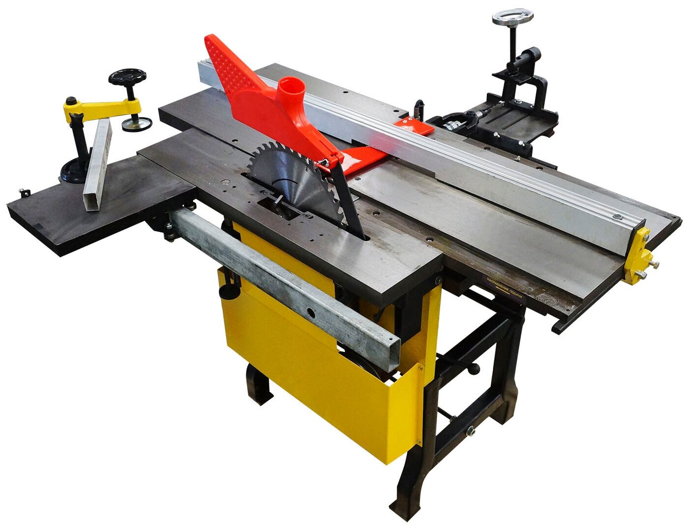 Processing material: wood, functions performed: sawing, cutting, cutting, thickness gauge, drilling, milling, type: machine, placement: floor, operating principle: semi-automatic, mains voltage: 220 V, working power