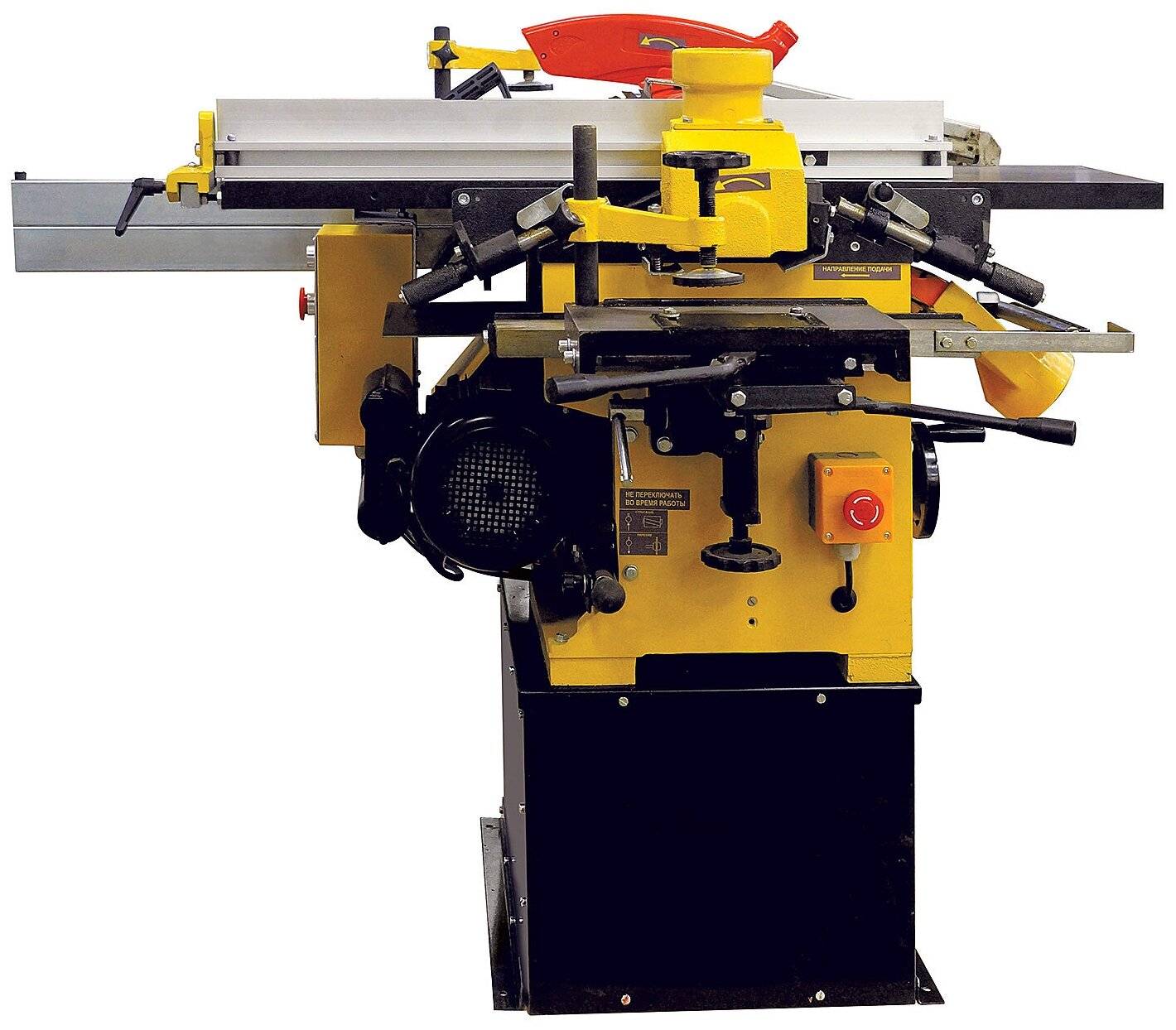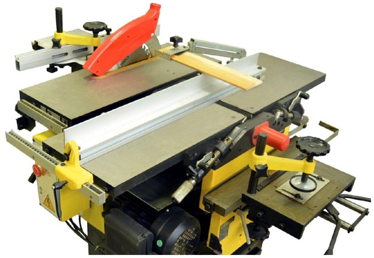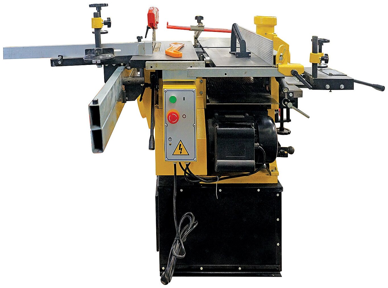 Processing material: wood, functions performed: sawing, cutting, planer, drilling, milling, jointing, type: machine, placement: floor, operating principle: mechanical, mains voltage: 220 V, working floor