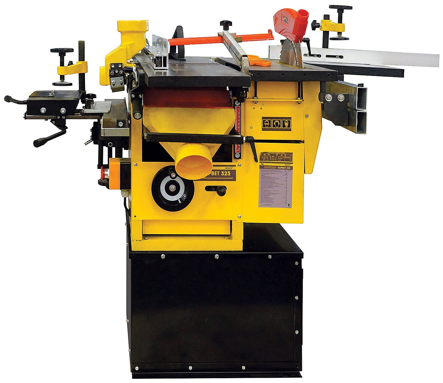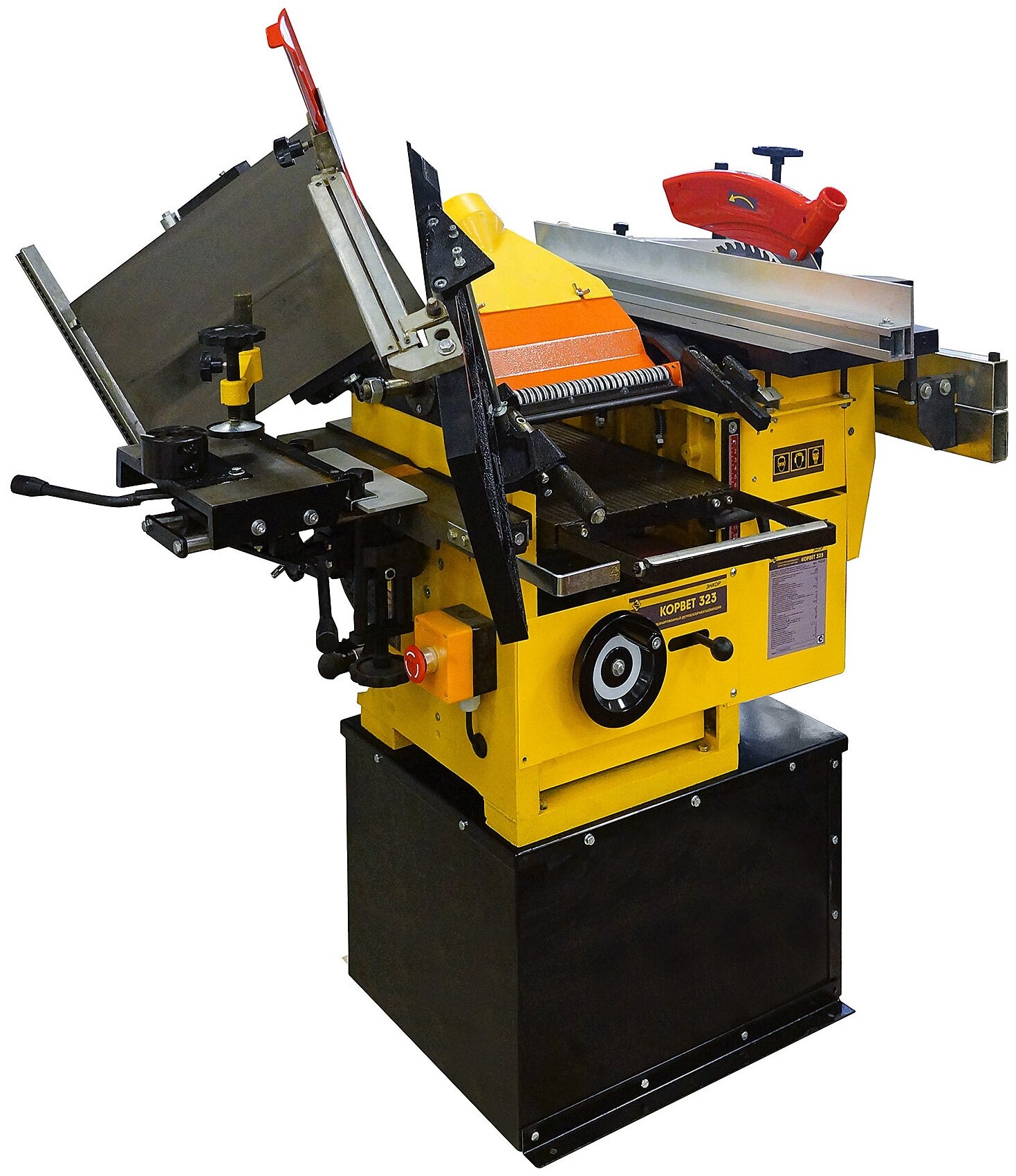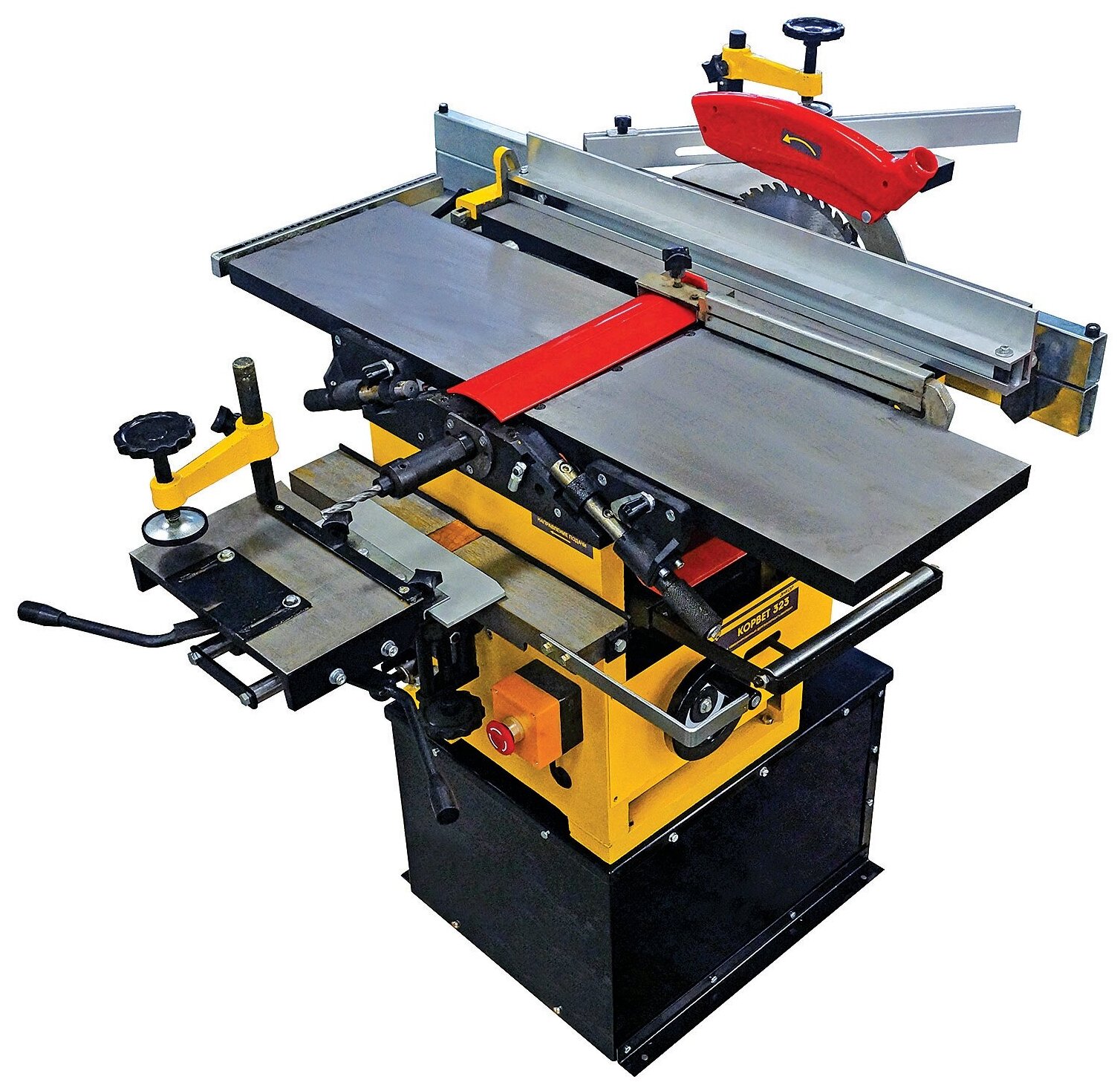Processing material: wood, functions performed: sawing, cutting, planer, drilling, milling, jointing, type: machine, placement: floor, operating principle: mechanical, mains voltage: 220 V, working floor