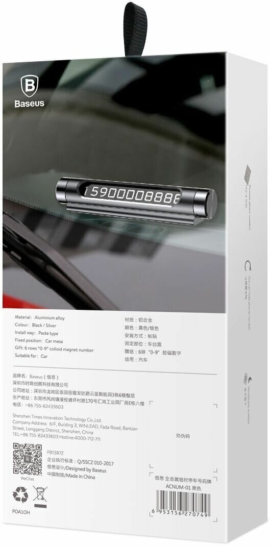 Baseus Temporary Parking Number Card Silver ACNUM-0S