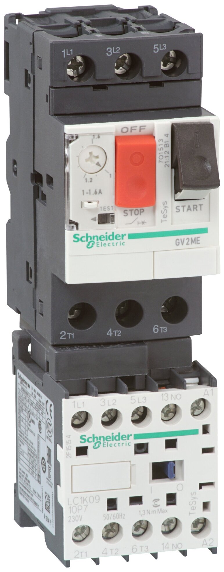 Type: combined motor starter, type of control voltage: AC altern., Number of aux. normally open NO contacts: 1, Rated. we commute. power at AC-3, 400 V: 2.20 kW, type of motor start
