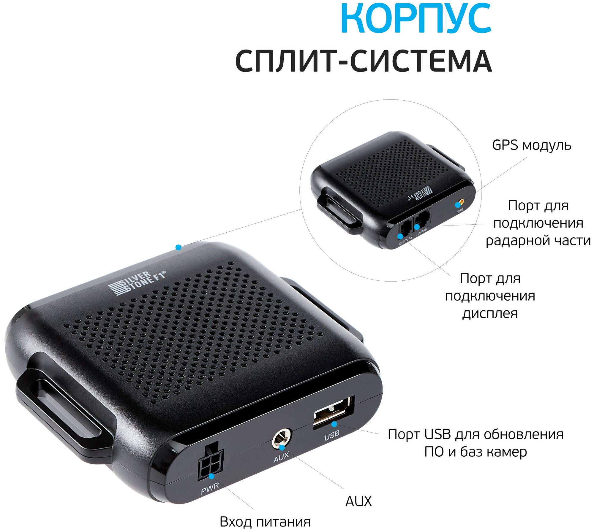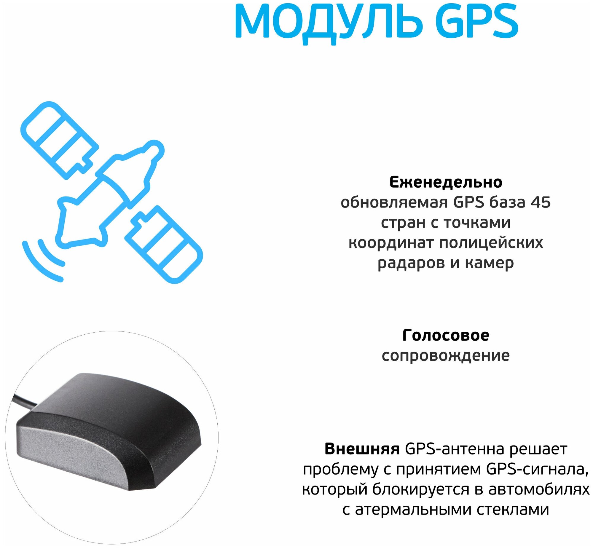 GPS, radar detection: "Robot", "Avtodoria", "Amata", "Arena", "Cordon", "Kris", "LISD", "Arrow", Ultra-K support, POP support, signature analysis, Mode " City, Highway mode, multi-module design