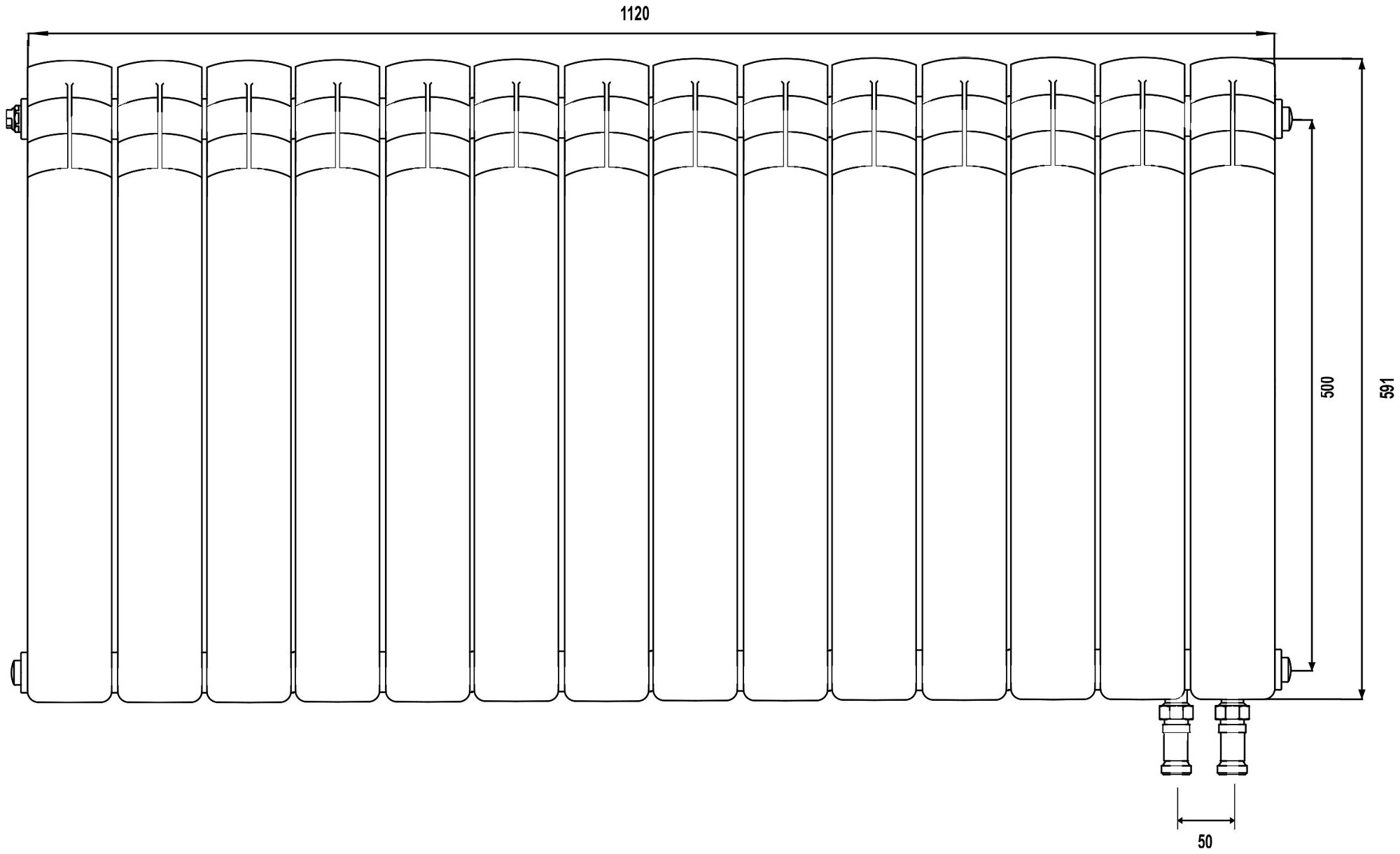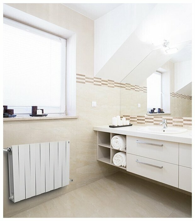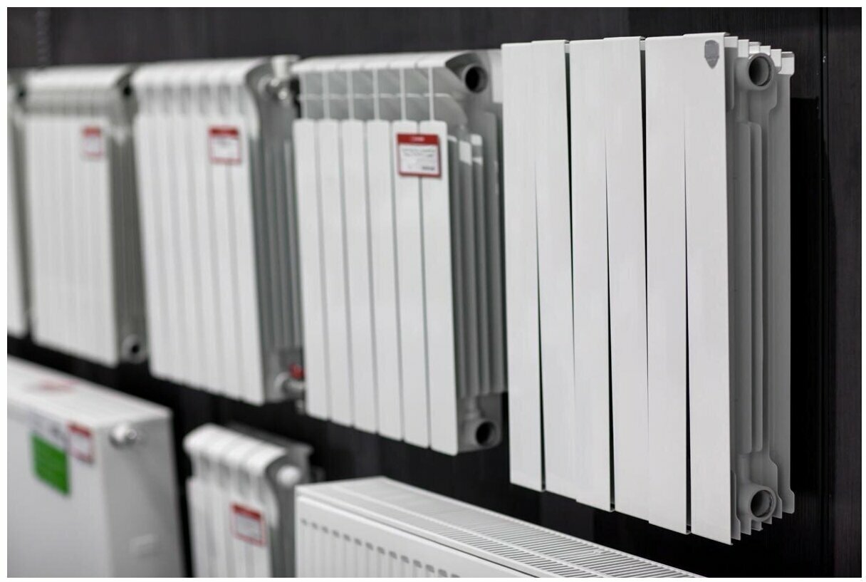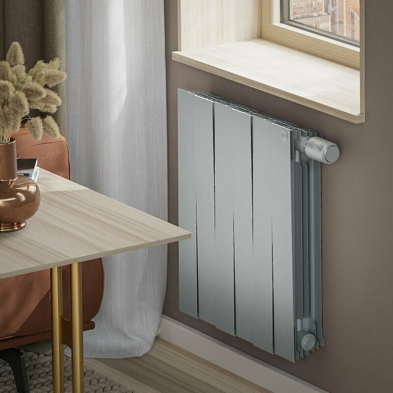 Material: bimetal, construction: wall-mounted, spacing: 500 mm, thickness: 100 mm, type: sectional, mounting kit
