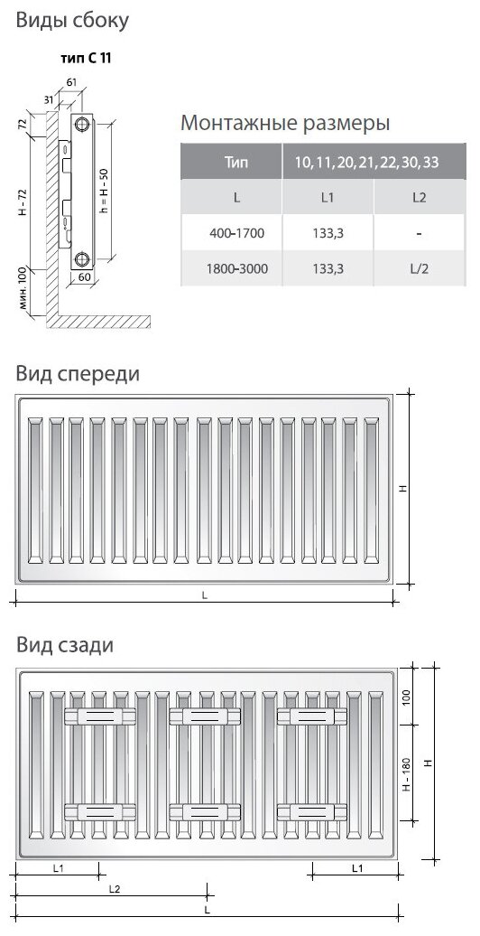 Material: steel, construction: wall-mounted, spacing: 445 mm, thickness: 61 mm, type: panel, mounting kit