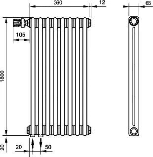 Material: steel, construction: wall-mounted, spacing: 50 mm, type: tubular