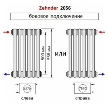 Tubular steel Zehnder Charleston 2056 558 with bottom connection