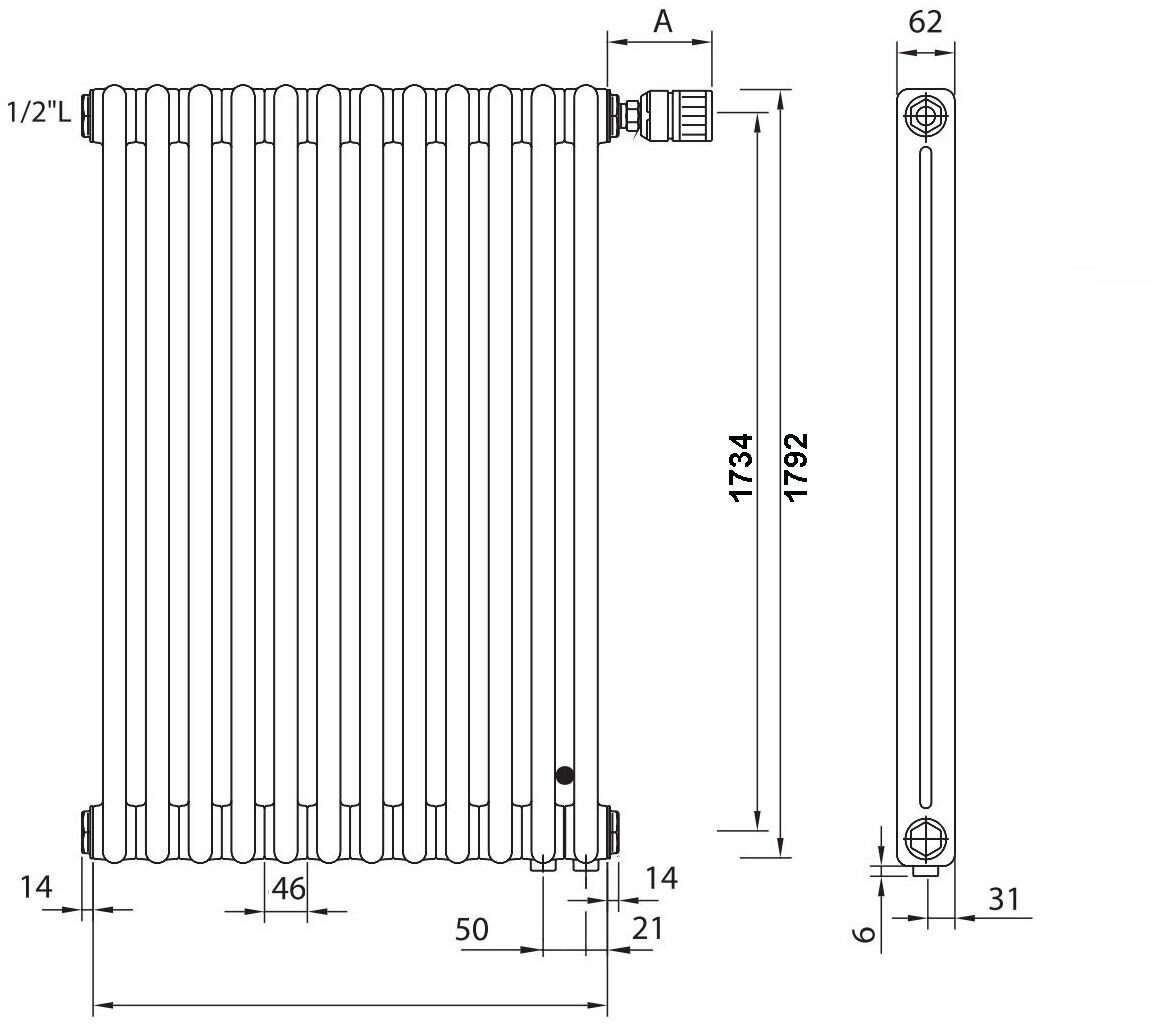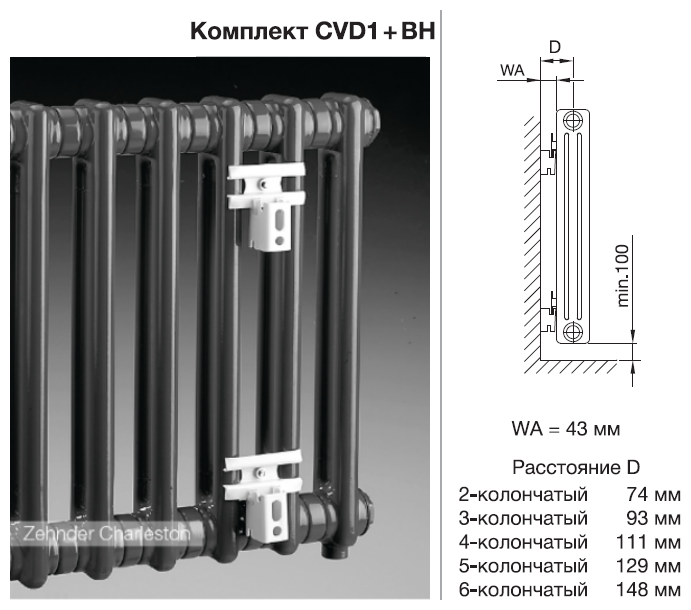 Material: steel, construction: wall-mounted, spacing: 50 mm, thickness: 62 mm, type: tubular