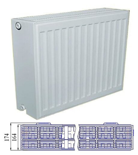 Material: steel, construction: wall-mounted, thickness: 174 mm, type: panel, mounting kit