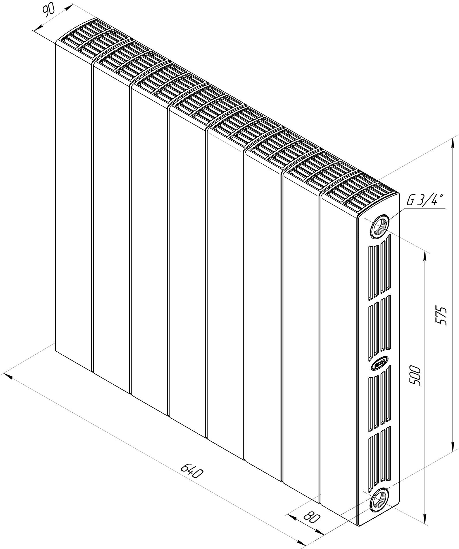 Material: bimetal, construction: wall-mounted, spacing: 500 mm, thickness: 90 mm, type: monolithic