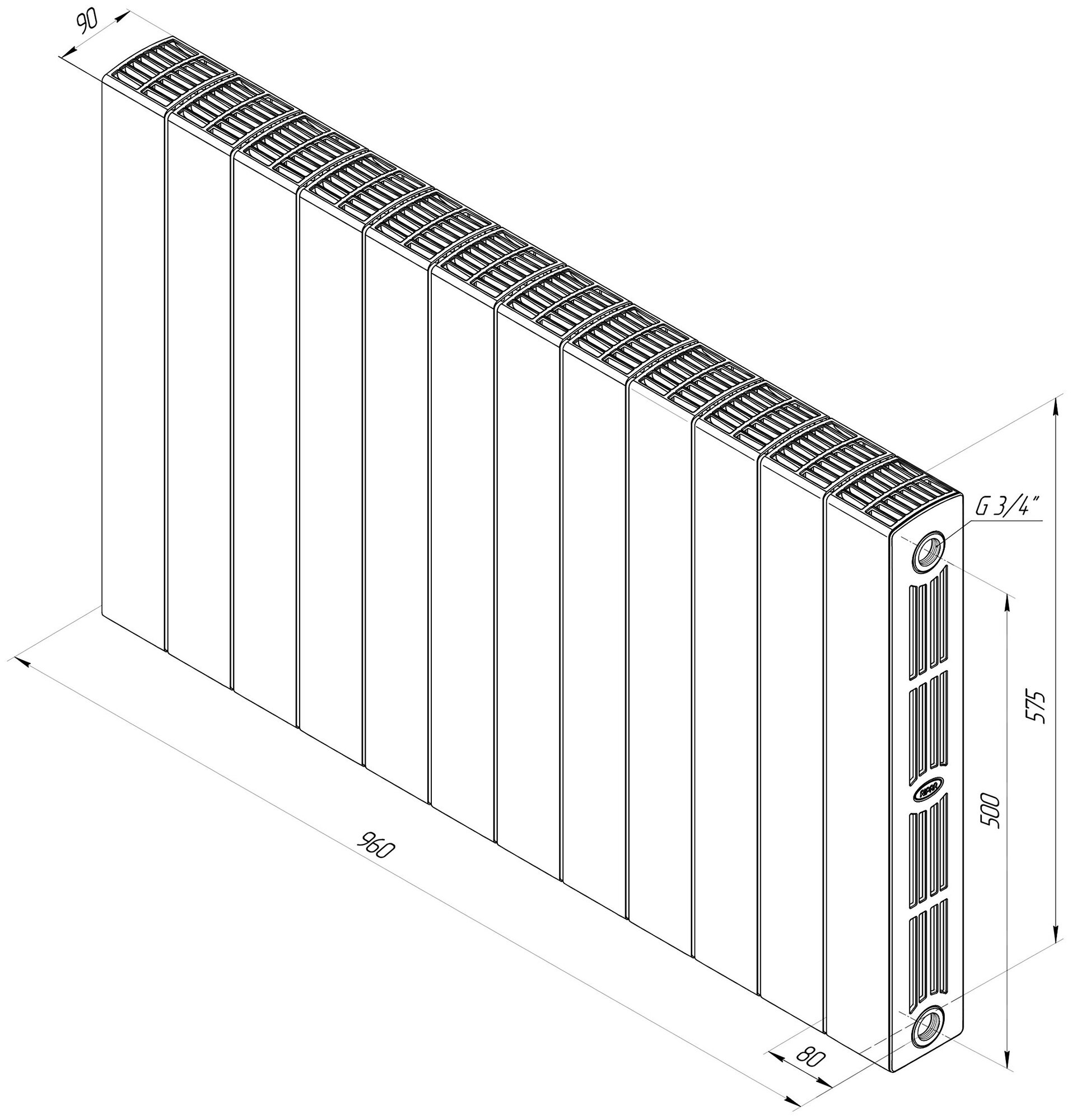 Rifar Supremo S500-12, 12 sections, side connection, bimetal