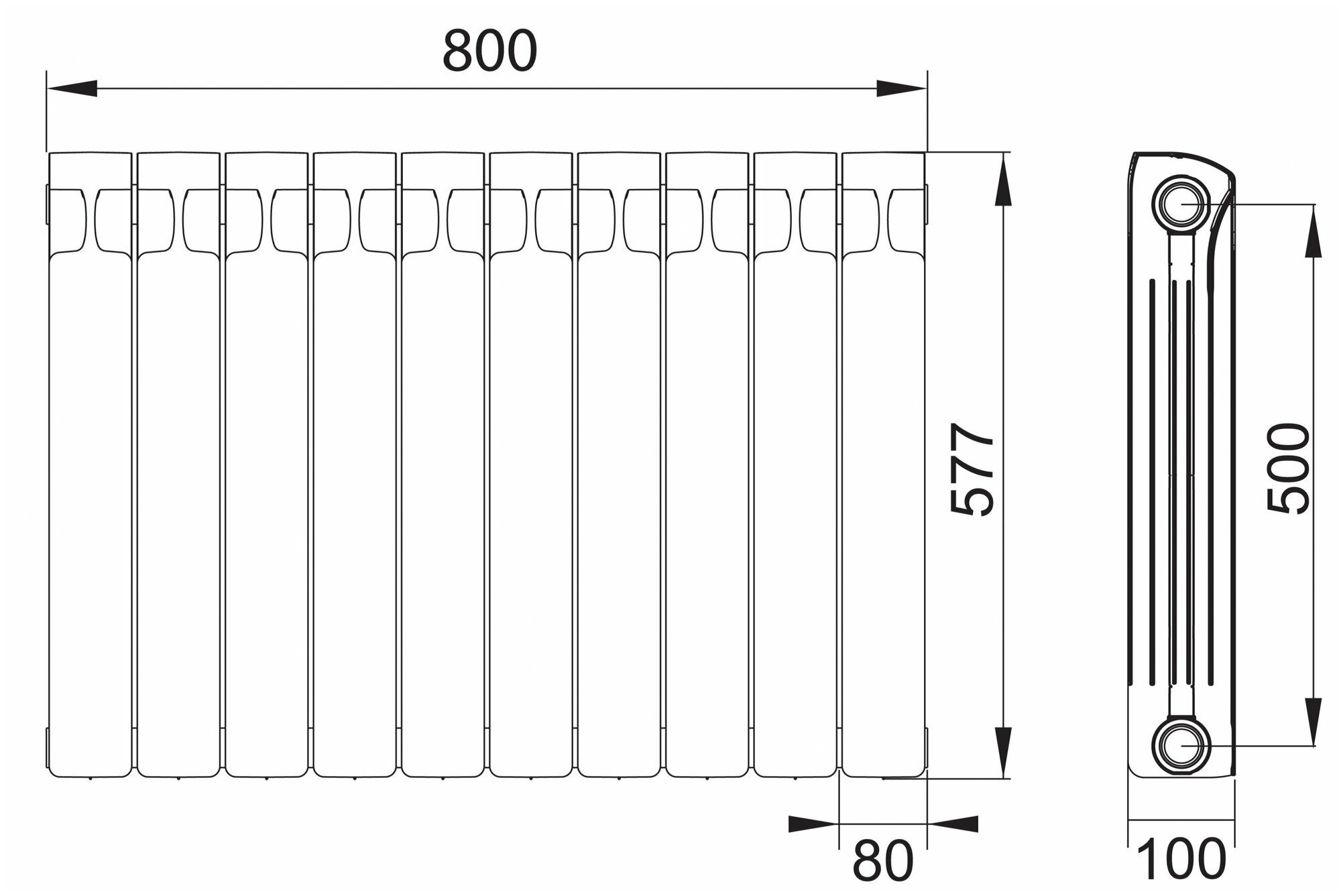 Material: bimetal, construction: wall-mounted, center distance: 500 mm, thickness: 100 mm, type: monolithic