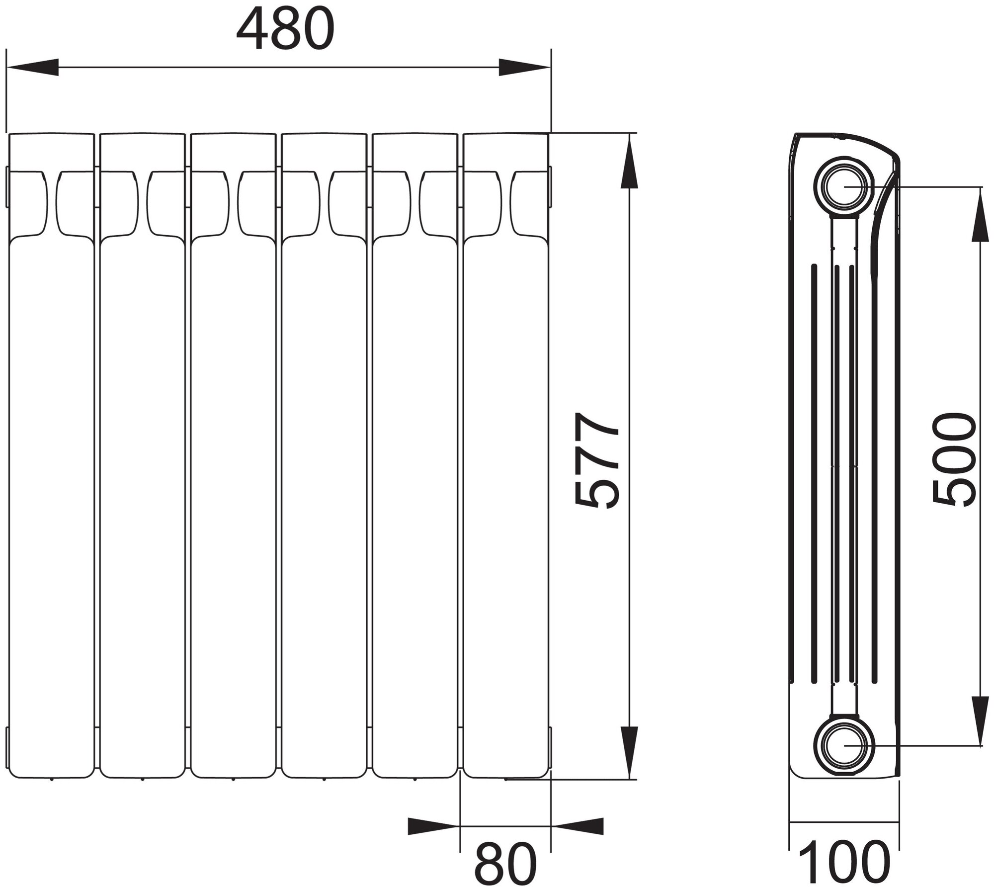 Material: bimetal, construction: wall-mounted, center distance: 500 mm, thickness: 100 mm, type: monolithic