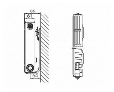 Material: steel, construction: wall-mounted, spacing: 250 mm, thickness: 61 mm, type: panel, mounting kit