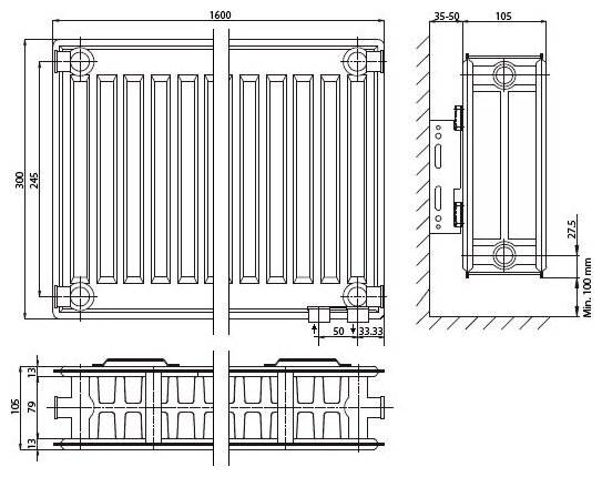 Material: steel, construction: wall-mounted, thickness: 100 mm, type: panel, mounting kit