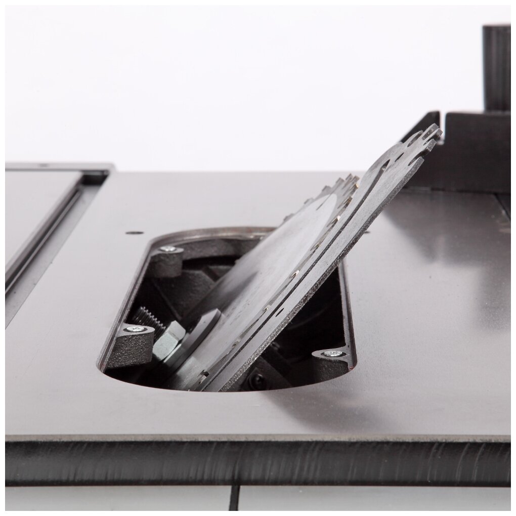 Table material: cast iron; parallel stop; cutting width 19 mm; detailed equipment: machine assembly -1, instruction manual - 1, tool kit - 1, fasteners kit - 1, switch assembly - 1, base -1, thickness
