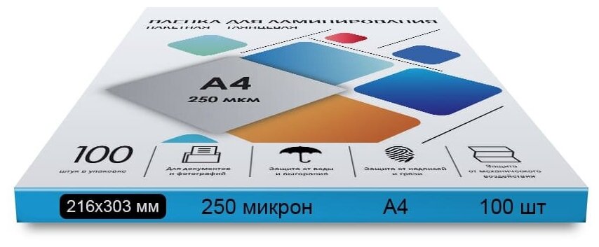 Format: A4, type of lamination: hot, thickness: 250 microns, features: glossy