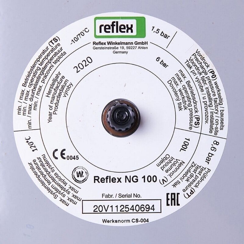 Type: expansion tank, volume: 100 l, installation: vertical, for heating, connection diameter: 1, maximum operating pressure: 6 bar, diameter: 480 mm, height: 670 mm