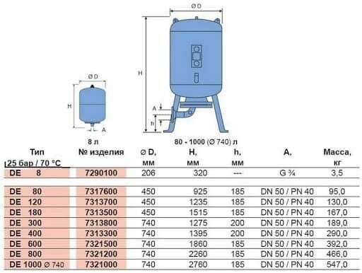 Type: hydraulic accumulator, volume: 100 l, installation: vertical, connection diameter: 1, maximum operating pressure: 10 bar, diameter: 480 mm, height: 852 mm