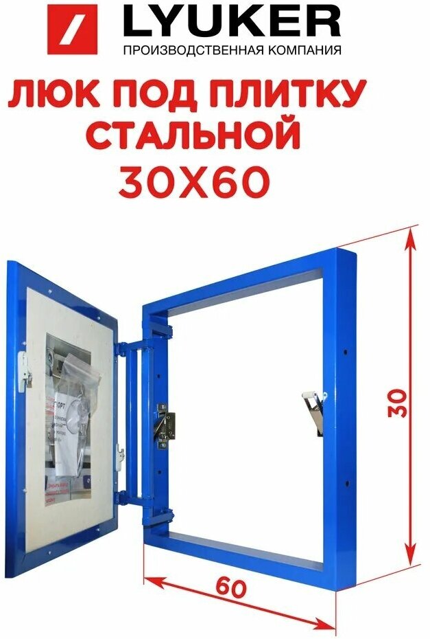 Door opening type: hinged, hatch location: wall-mounted, locking mechanism: push, purpose: for tiles, frame material: steel, door material: gypsum fiber