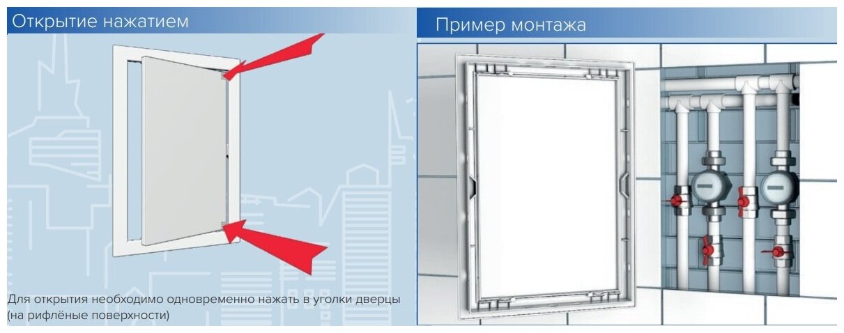 Door opening type: hinged, hatch location: wall, ceiling, locking mechanism: push, purpose: sanitary, frame material: plastic, door material: plastic