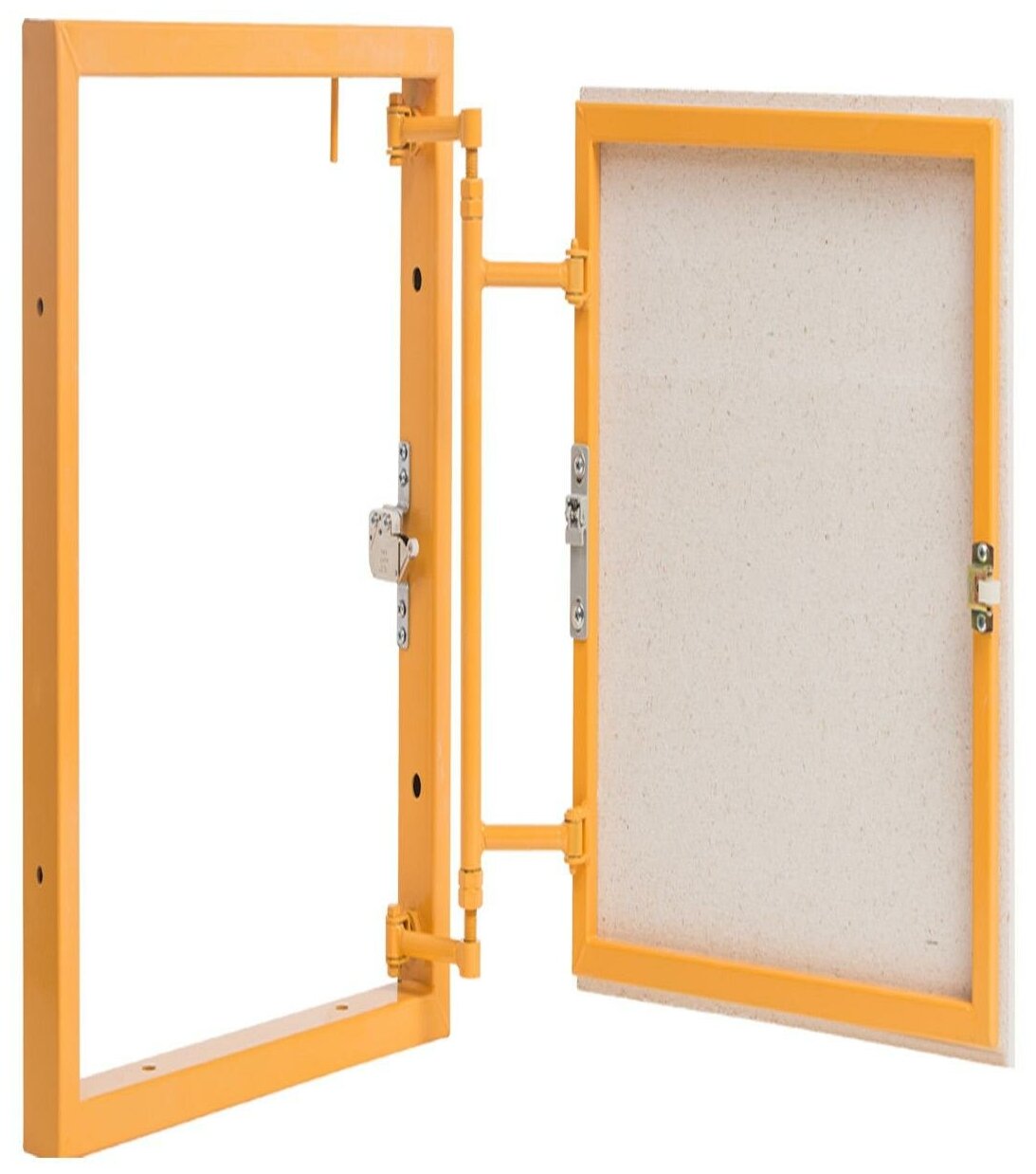 Door opening type: hinged, hatch location: wall-mounted, purpose: under tiles, frame material: steel, door material: gypsum fiber
