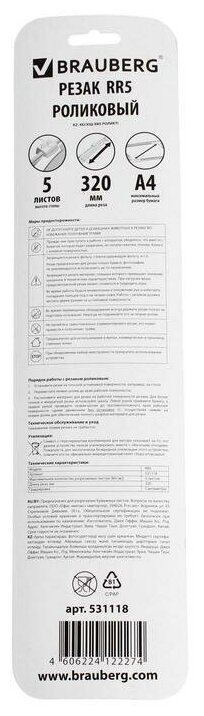Roller BRAUBERG R3, 3 l, cutting length 320 mm, safety blade, in blister, A4, 531118