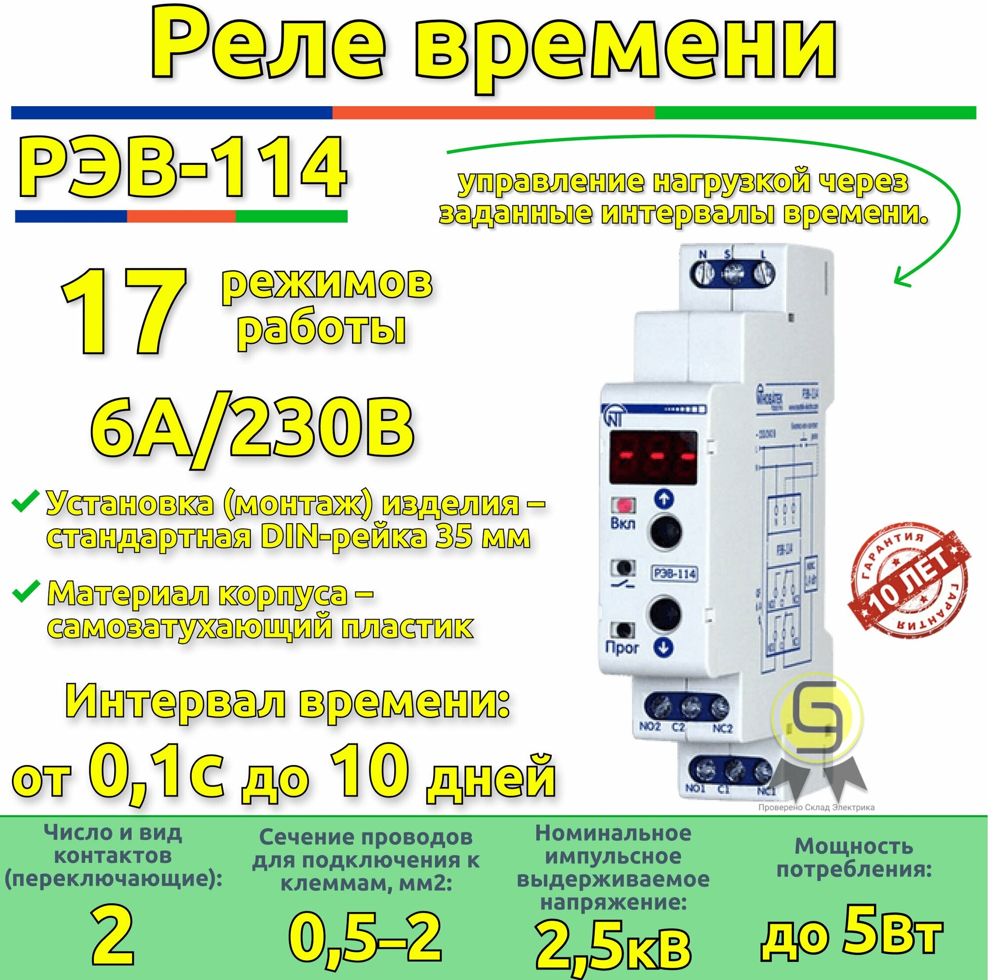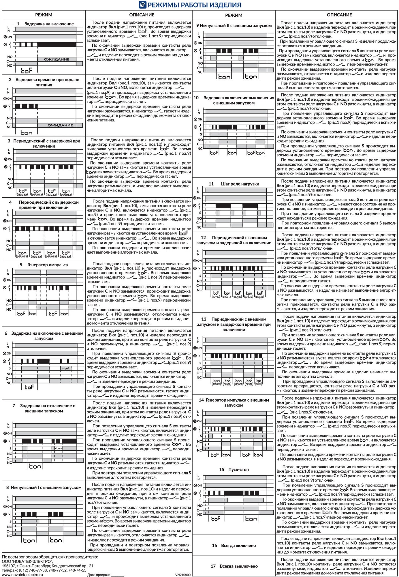 17 operating algorithms: turn-on delay, power-on delay, periodic with turn-on delay, periodic with turn-on delay, pulse generator, turn-on delay with external