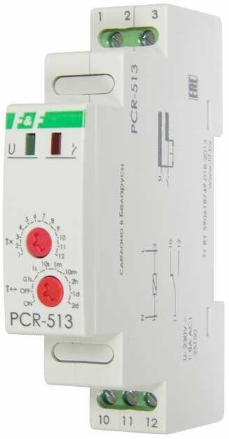 Time delay PCR-513 incl. 230V 8A 1sw. IP20 DIN rail mounting F&F EA02.001.003