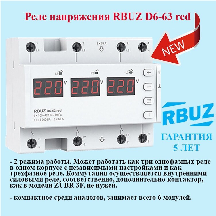 Voltage RBUZ D6-63 red three-phase 3х63А