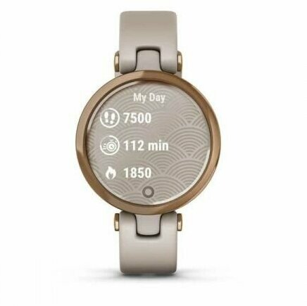 Garmin Lily smart watch, cream gold bezel, white case and silicone