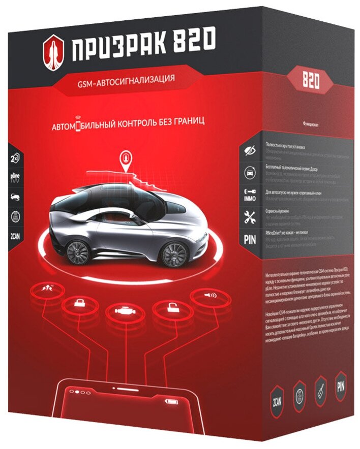 Type of communication with the key fob: one-way, security functions: auto-arming, anti-robbery, engine blocking, silent security, service functions: auto-locking of doors, zone-by-zone shutdown, vehicle search