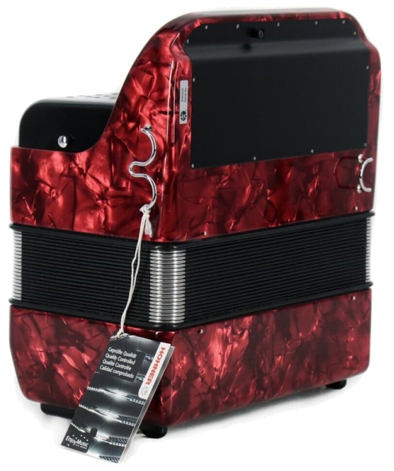 Accordion range: G to G; keyboard system: C-System European layout; voices in the right keyboard: 2; voices in left keyboard: 4