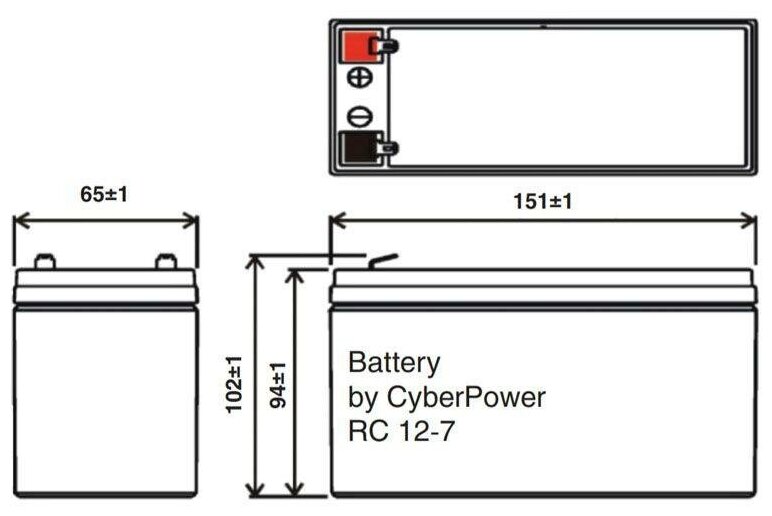 Model/version: lead dry element, AGM, nominal. voltage: 12 V, battery capacity: 7 Ah, length: 151 mm, height: 94 mm, width: 65 mm, height including terminal pole: 102 mm, features: indoor installation