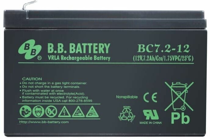 Model/version: lead dry element, AGM, nominal. voltage: 12 V, battery capacity: 7.20 Ah, length: 151 mm, height: 94 mm, width: 65 mm, depth: 65 mm, height including terminal pole: 100 mm, features: installation inside