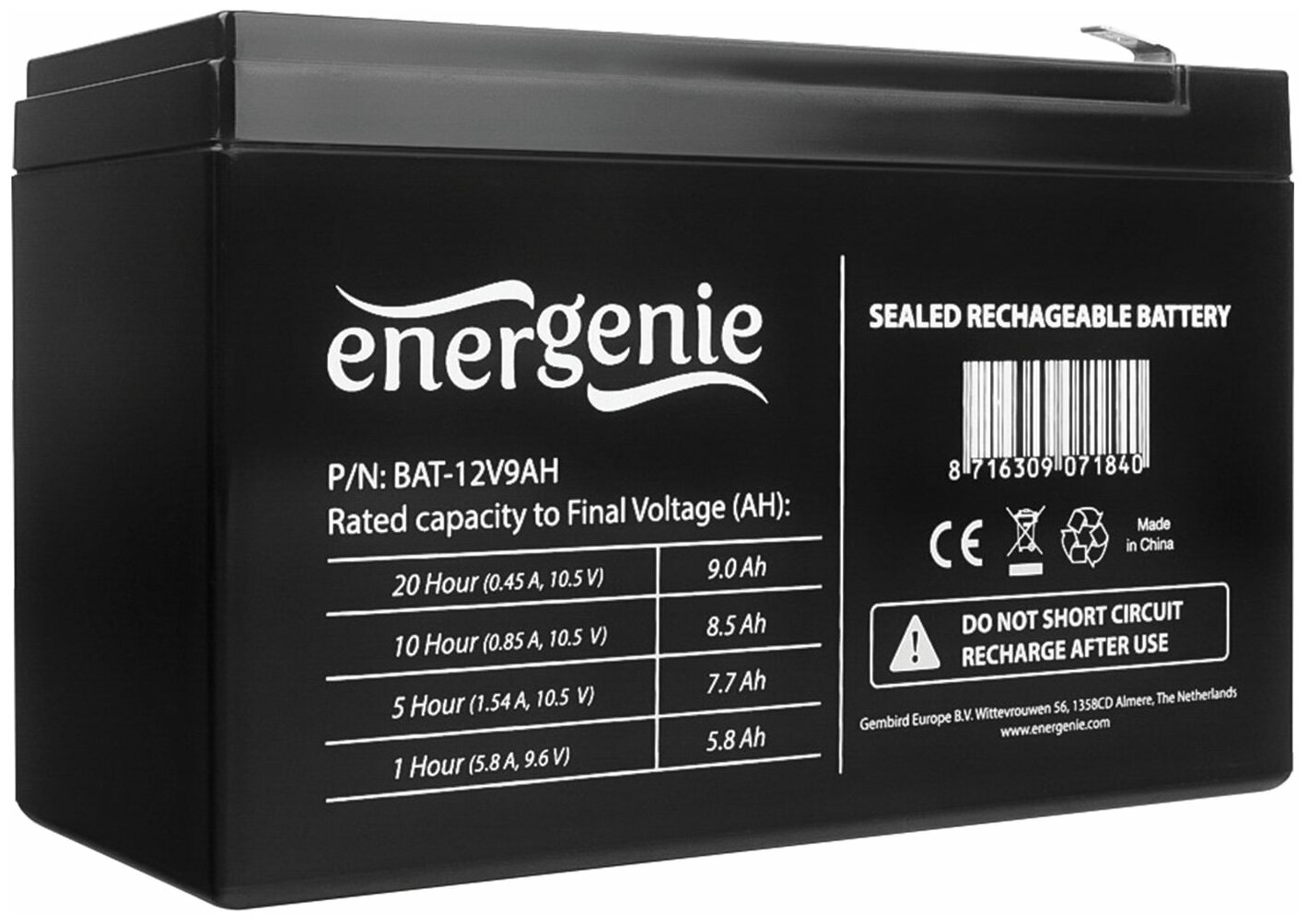 For UPS of all brands, 12 V, 9 Ah, 151×65×94 mm, ENERGENIE, BAT-12V9AH